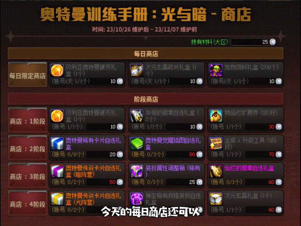 ·奥特曼的战令商店,今天的每日商店还可以,都可以换。然后奥特曼NPC这个商店又新增加了奥特曼战令经验,用五个银币换一百经验,缺经验的可以买全勤过来的,不用买肯定能满级,除非你着急升级。
