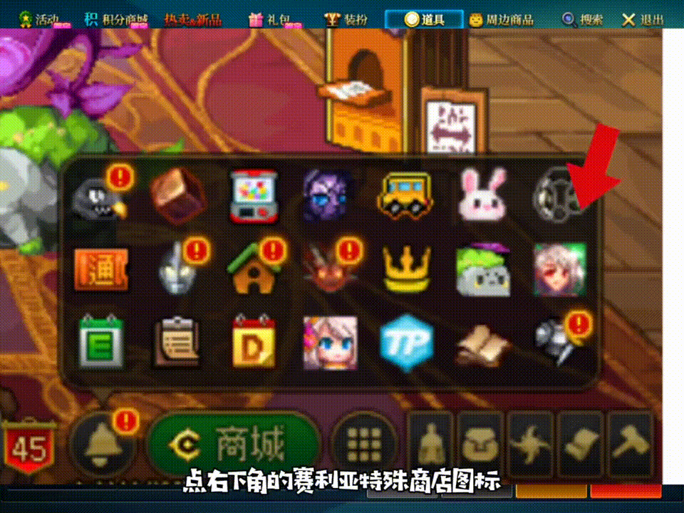 ·在商城的道具特殊扩展,这里面三十块钱一个,点右下角的赛利亚特殊商店图标,一金币买无限次数史诗之路门票一套,换装一套,史诗一套护石符文。这几样道具就算打开以后也是账号绑定,不用必须给一个小号,可以给多个有需求的小号分发。